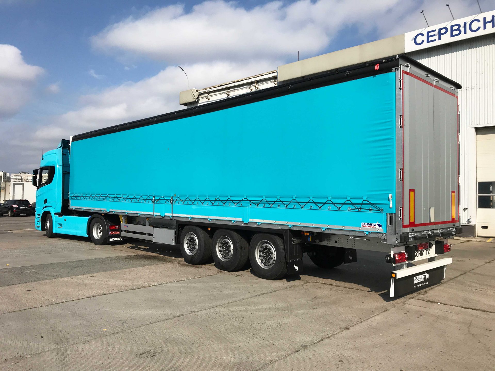 Isn’t it beautiful? The matching colors of the printed curtain sider and the cabin color make for a unique and impressive identifying image. However, what will it look like in a year after UV radiation and other harsh weather conditions have shown their forces? Well, just as beautiful as it looks now!